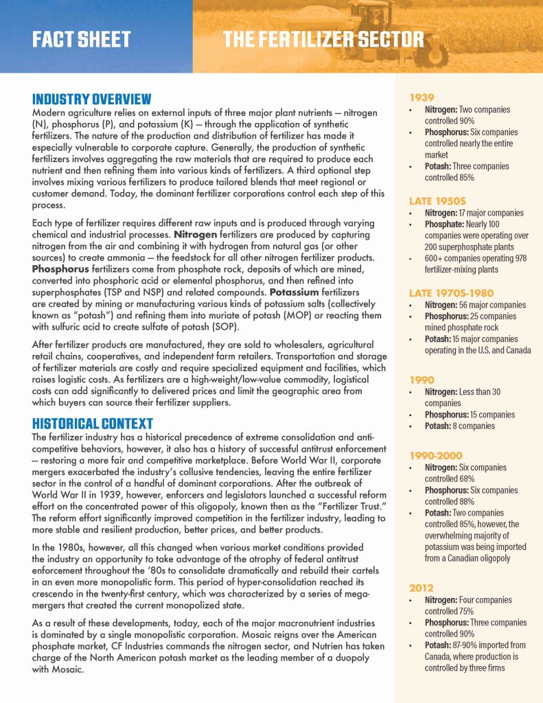 Today, about three dozen corporations dictate the development and trade terms for nearly every industry involved in growing, processing, and distributing food. Decades of weak antitrust enforcement have led to these unprecedented levels of concentration. Corporations rake in record profits while farmers and workers are squeezed and consumers face rising prices at the grocery store.