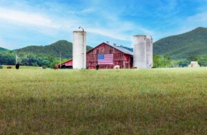 barn in the field and American Flag