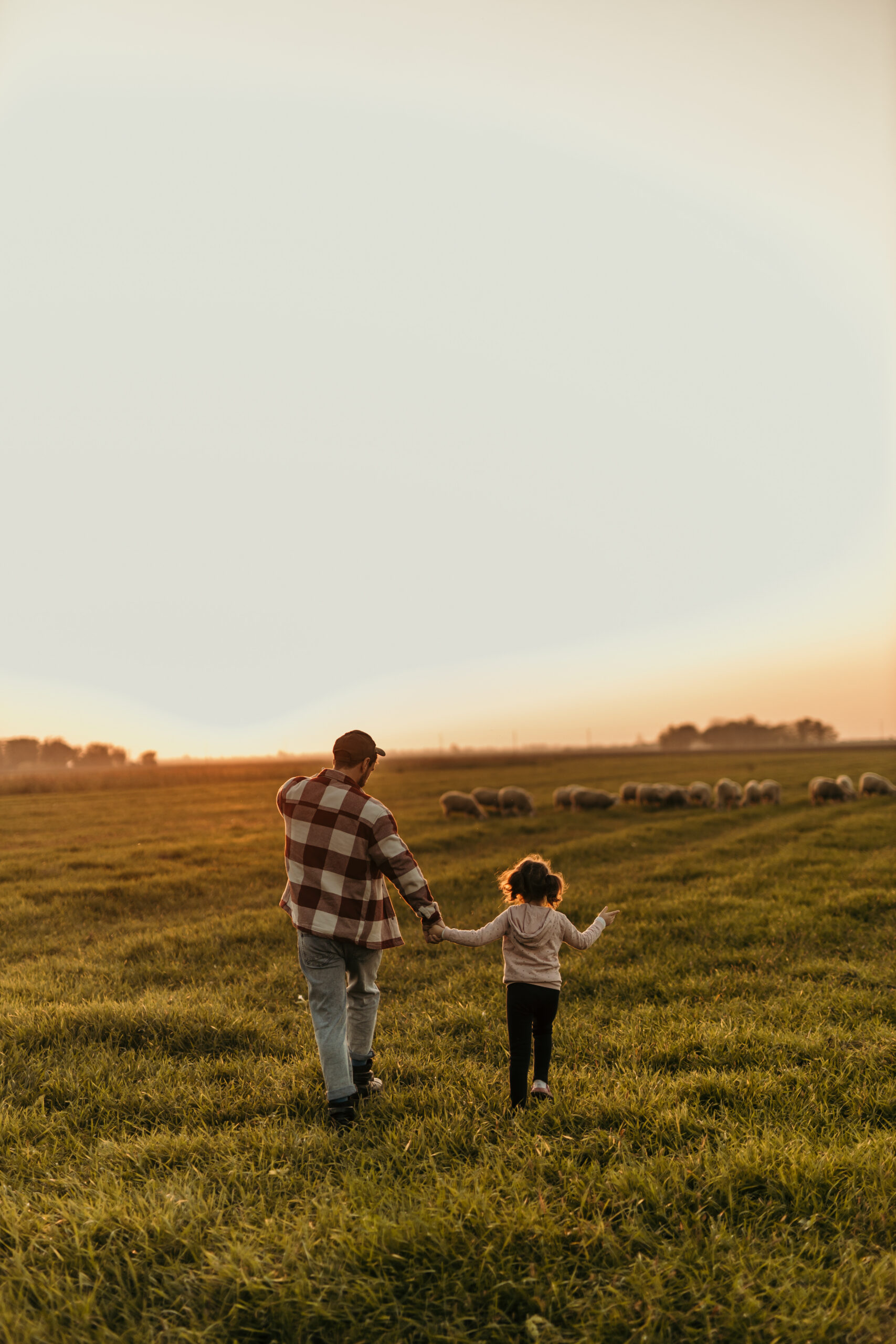 Farmer and his little girl enjoying the tranquility of their rural land at dusk